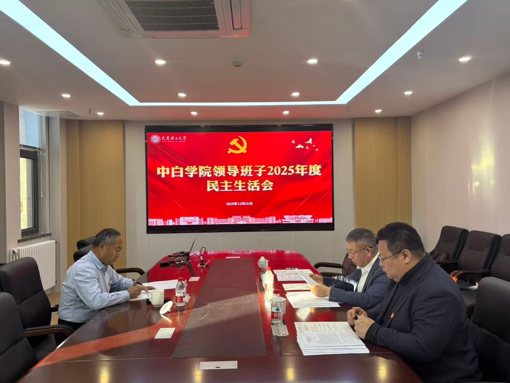 2025年12月31日下午,中白学院领导班子2025年度民主生活会于经管楼D263会议室顺利召开。学校总会计师冯宝军到会指导,学院领导班子成员参加会议。会议由中白学院直属党支部书记、院长季顺迎主持。