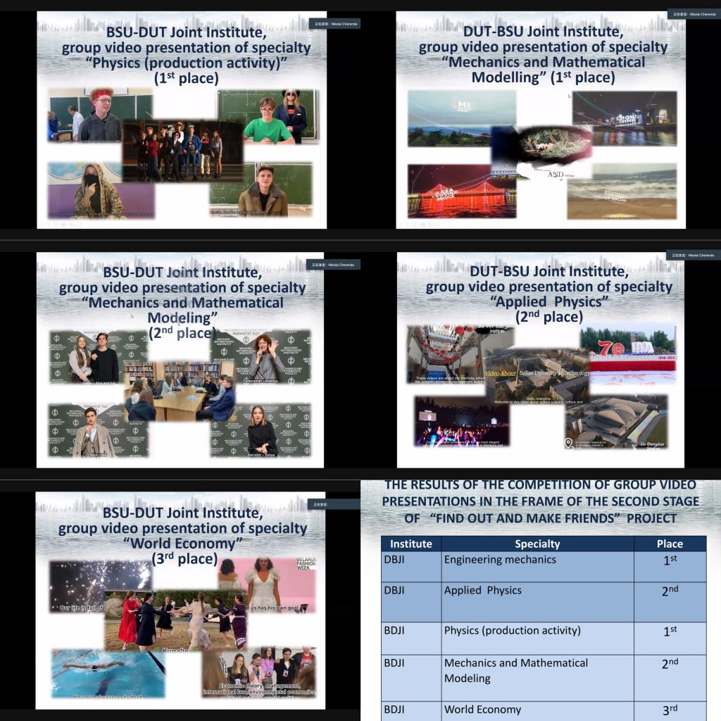 随后,伊戈尔·萨拉杜恒公布了获奖视频作品,中白两所学院的同学们相继发表感言。来自白中学院的同学伊丽莎白和玛丽亚(Maryia & Elizabeth)用一口流利的中文与大家问候,并表达了对中华文化的热爱,令全场无比惊喜。尼基塔(Nikita Chan)同学还别出心裁地在会议现场实时为同学们分享了明斯克街头的圣诞树,让远在大连的伙伴们也感受到了白俄罗斯浓厚的节日氛围。