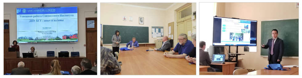 4月26日至27日,代表团参加了庆祝白俄罗斯国立大学力学数学系成立65周年的国际会议“Transformation of the mechanical-mathematical and IT-education in the context of digitalization”,中白学院副院长郭淑红教授做了题为“Successful work of the Dalian University of Technology and Belarusian State University: Experience and Challenges”的大会主旨报告,工程力学系吕永涛副教授、数学学院刘浏教授分别做了题为“Integrated research and teaching activities in Engineering Mechanics at DUT”和“The stability analysis of time-varying systems in the framework of neat algebra”的分会场报告。随后,代表团一行与参会的俄罗斯、白俄罗斯学者就大连理工大学力学系及数学学院当前的研究重点、主要研究方向、中白学院教学及科研情况等进行深入交流。