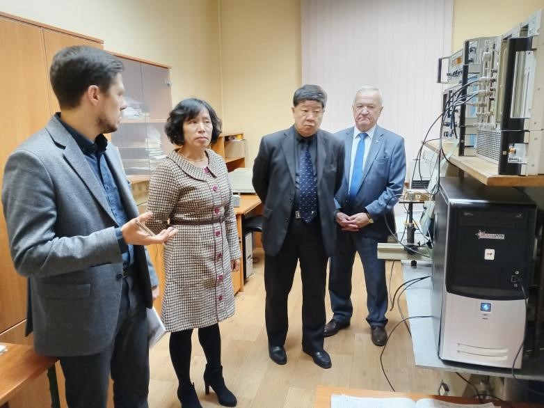 随后,代表团参观了学校博物馆,在格罗德诺国立大学技术物理系主任根纳季·加奇科教授的陪同下,访问了格罗德诺国立大学技术物理系实验室,参观了实验室自主研发的光学成像等先进设备,并与实验室科研工作人员进行了深入的交流,在纳米薄膜力学、光学成像、核物质研究等领域初步达成了合作意向。