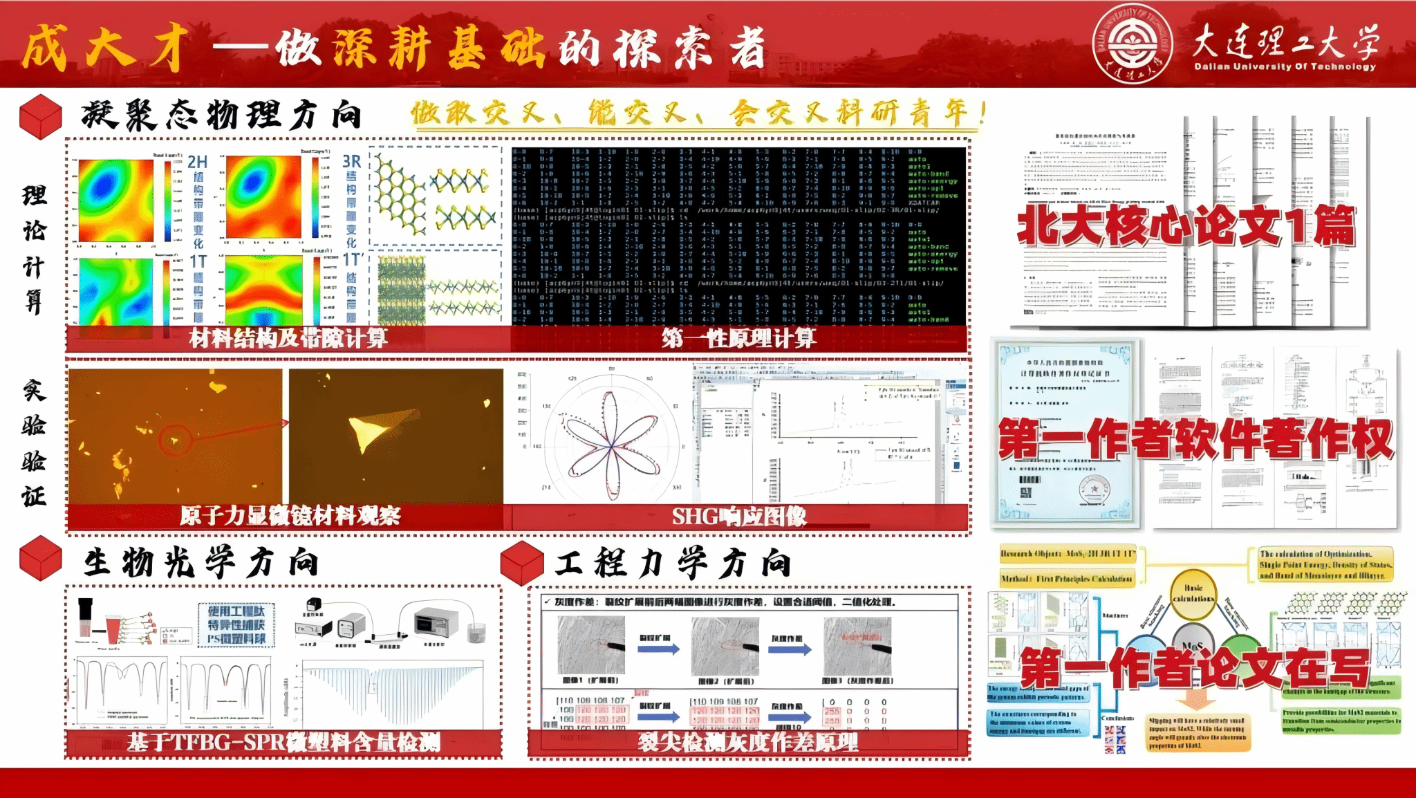 随着专业学习的不断深入,武小青不再将目光局限于书本和考试,更期望用专业知识为国家作出实际的贡献。她聚焦凝聚态物理、生物光学方向和工程力学方向,做敢交叉、能交叉、会交叉的科研青年。