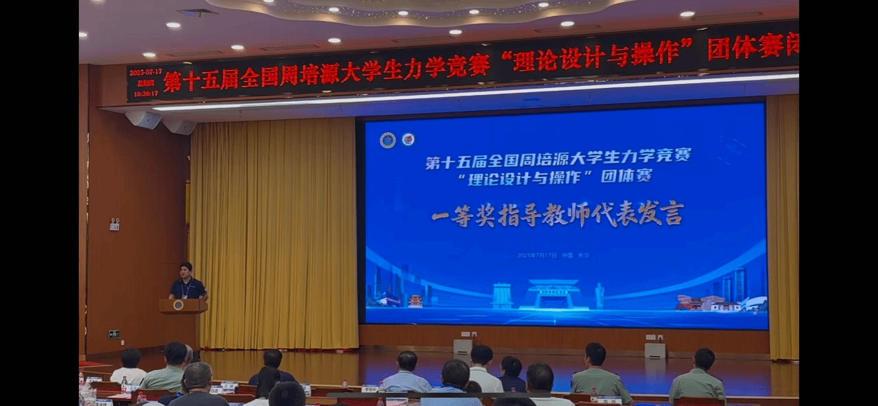 7月15日至17日,受教育部高等教育司委托,由中国力学学会和周培源基金会共同主办,《力学与实践》编委会和中国力学学会教育工作委员会联合承办,中国力学学会科普工作委员会、中国人民解放军国防科技大学协办的第十五届全国周培源大学生力学竞赛“理论设计与操作”团体赛圆满结束。我校师生继个人赛后,在团体赛中再次取得了优异成绩,获得理论设计与操作一等奖(全国第二名)。