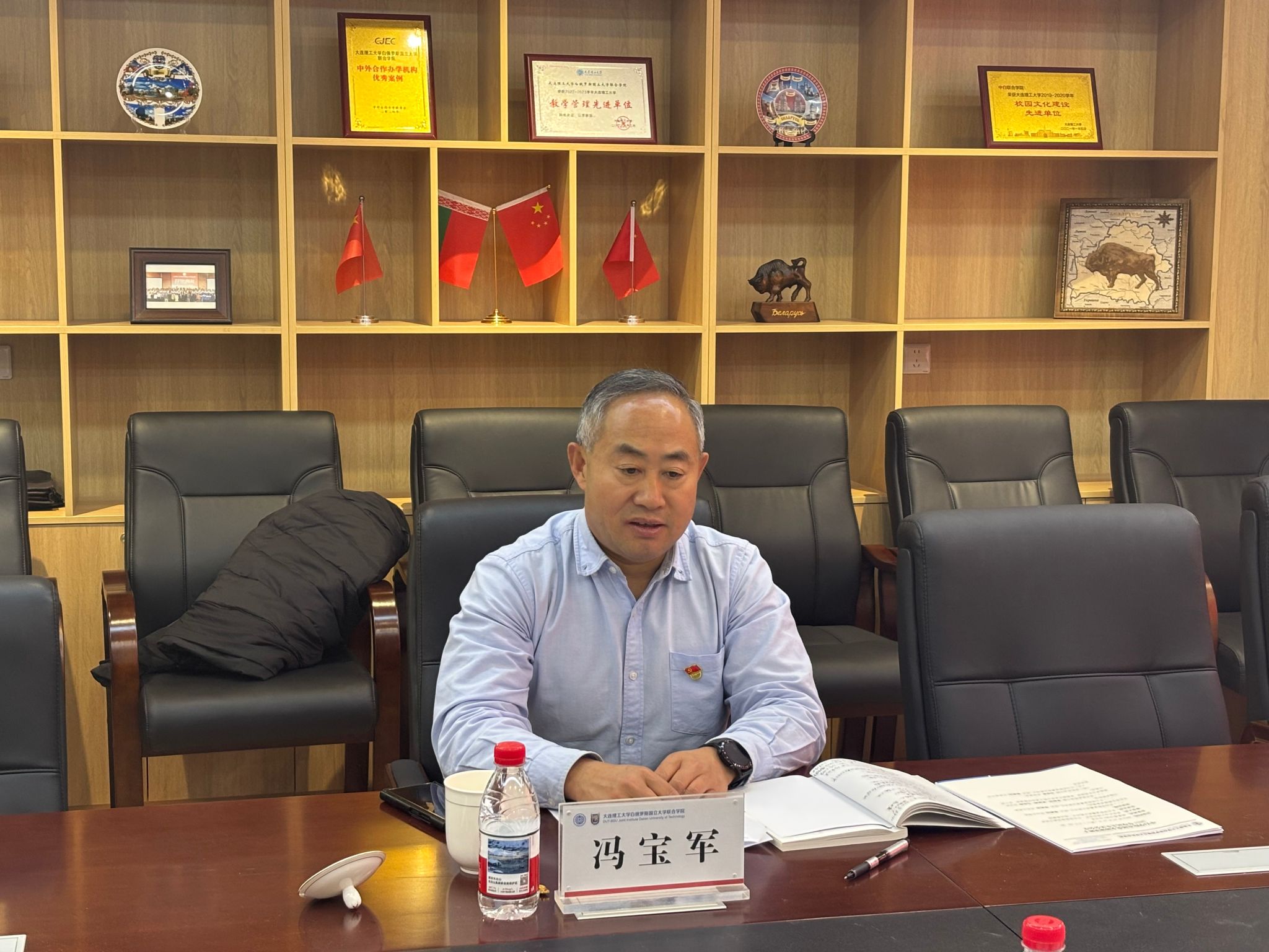 冯宝军围绕领导班子检视情况,结合学校党委部署和学院发展实际,提出三点要求。一是强化思想建设与政治引领,锤炼过硬工作本领。中白学院作为特色鲜明的合作办学单位,要进一步提高服务大局的能力水平。坚持以习近平新时代中国特色社会主义思想为指导,锚定 “十五五”规划目标,深入学习贯彻中央经济工作会议精神,切实将学习成果转化为推动合作办学高质量发展实效,确保新征程开好局、起好步。二是促进党建与事业发展深度融合,扎实推进 “一融双高” 建设。要立足中白学院中外合作办学特色,以高质量党建引领事业高质量发展,把党的领导贯穿合作办学全过程,彰显中外合作办学的党建底色,实现党建业务同频共振、互促共进。三是擦亮中白合作办学第一品牌, 打造办学标杆样板。中白合作办学是两国深度合作的重要载体,要依托中白大学联盟、“一带一路”联合实验室等平台,强化示范引领效能,在办学实践中率先垂范、走在前列。要做好 “十五五” 规划顶层设计,突出中外合作办学优势,为推动一流大学建设加速卓越注入更多“中白力量”。
