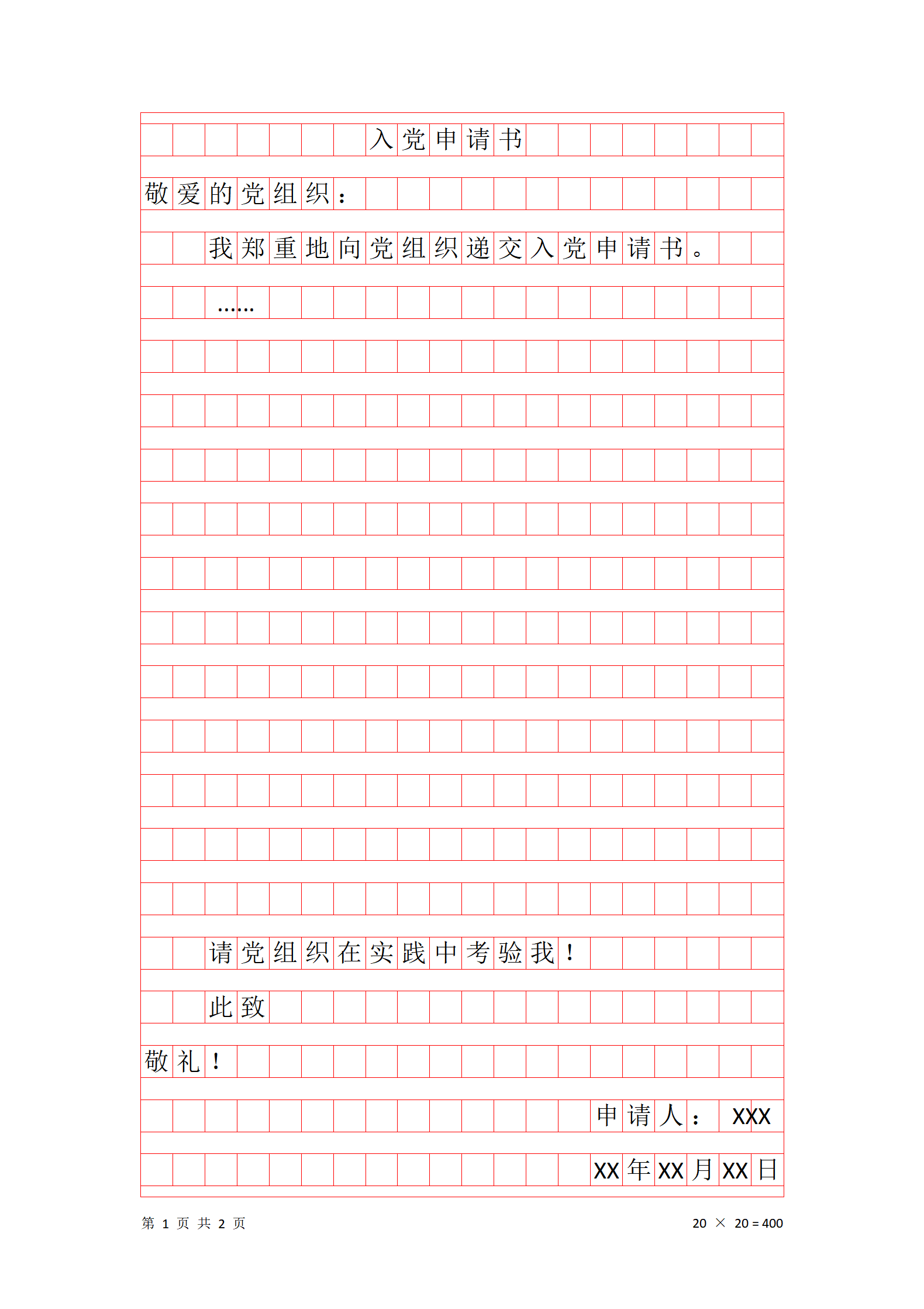 1、标题。居中写“入党申请书”