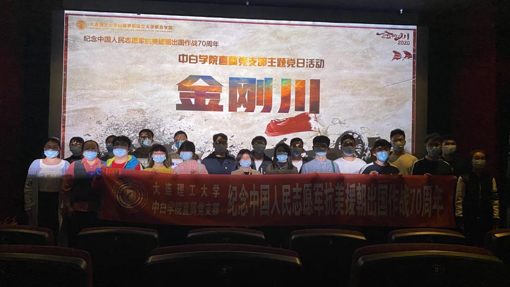 为纪念中国人民志愿军抗美援朝出国作战70周年,弘扬爱国主义为核心的伟大民族精神,激发师生爱党爱国热情,进一步增强“四个自信”,10月28日,中白学院直属党支部组织开展观看电影《金刚川》主题党日活动。