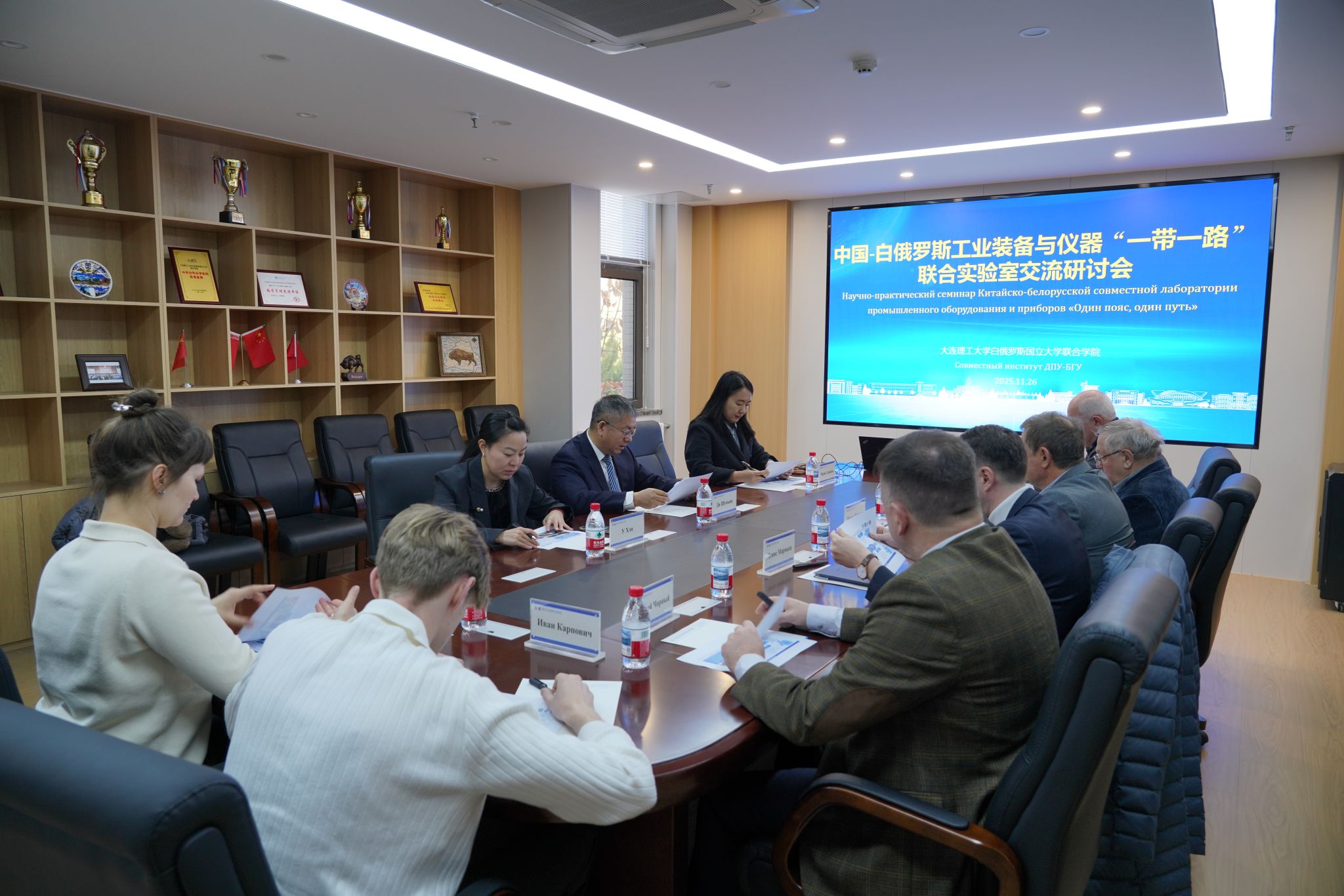 To deepen China-Belarus Scientific and Technological Innovation Cooperation and promote collaborative innovation in the field of Industrial Equipment and Instruments, a delegation of 7 experts from Belarusian State University, Heat and Mass Transfer Institute of the National Academy of Sciences of Belarus, and The Joint Institute of Mechanical Engineering of the National Academy of Sciences of Belarus visited DBJI on November 26, 2025, to join a special seminar and exchange on the China-Belarus Belt and Road Joint Laboratory on Industrial Equipment and Instruments (hereinafter referred to as the "China-Belarus Belt and Road Joint Laboratory"). The meeting was chaired by Professor Ji Shunying, Secretary of the Direct Party Branch and Dean of DBJI.