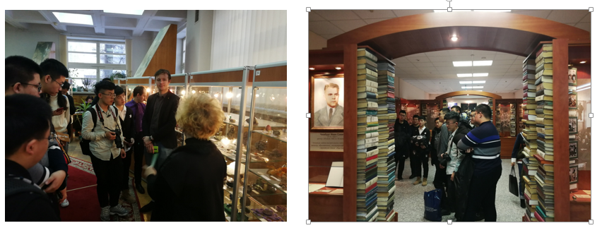 除了专业课学习外,白俄老师带领学术们参观了明斯克州的名胜古迹,明斯克独立广场、胜利广场、红教堂、民俗村、动物博物馆、植物博物馆、化石博物馆、市政厅大楼、邮局、国家图书馆都留下了我们的足迹。最具代表性的则是胜利广场上的长明圣火,无时无刻不体现着烈士不朽精神。19日晚,一行人参观白俄国家图书馆,独特的造型体现着白俄设计师天马行空的设计思想,行走在图书馆犹如遨游在知识的海洋,自动化的借阅模式令同学们耳目一新,只有站在图书馆顶楼俯视明斯克,才能完全体会明斯克的独特魅力。20日,团队一行参观了具有白俄传统生活特色的民俗村,制作陶土、编织亚麻饰品、乘坐马车等等,同学们切身体会了白俄传统生活。