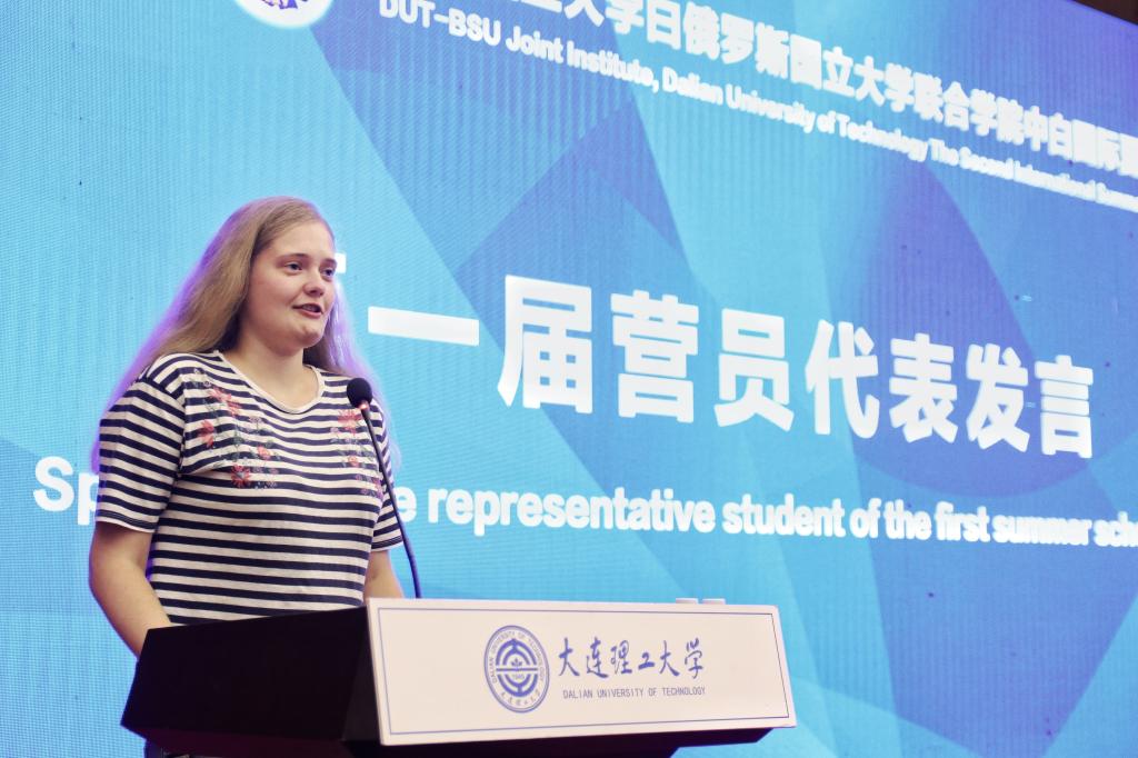 白俄罗斯国立大学教师代表Pusiankova Halina在发言中对中白学院举办国际夏令营活动表示感谢,同时希望全体营员通过此次夏令营的专业学习和文化体验,加深对彼此的了解、增进中白两国学子之间的友谊。