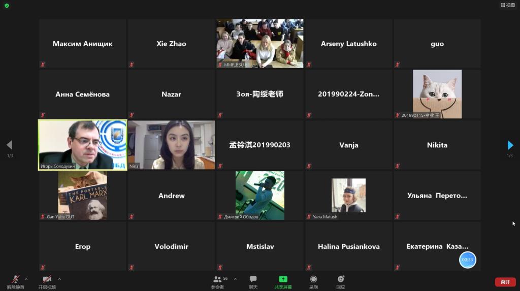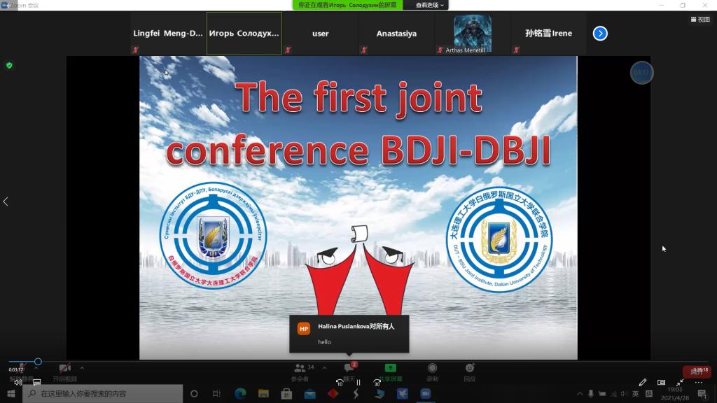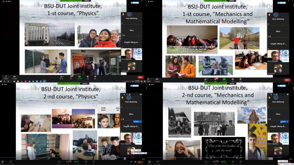 为进一步推动中白一流大学精英人才“同窗友情”育成计划落地实施,4月27日~28日,大连理工大学中白学院与白俄罗斯国立大学白中学院共同线上举办“友谊在明斯克&友谊在大连”系列活动。会议由白中学院院长伊戈尔·萨拉杜恒(Ihar Saladukhin)主持,中白学院副院长郭淑红出席会议,来自中白学院与白中学院的70余名同学分组进行了精彩的线上展示。