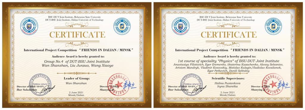 6月2日晚,由中白学院和白中学院共同主办,以“丰富学生学习生活、增进中外文化交流”为主题的“友谊在明斯克&友谊在大连”系列活动,经过三个活动阶段、历时近两个月,终于以云端交流方式圆满落幕。白俄罗斯国立大学第一副校长德米特里•梅德韦杰夫、中白学院院长季顺迎、副院长郭淑红先后在致辞中对获奖团体及个人表示了祝贺,白中学院院长伊戈尔·萨拉杜恒为获奖者们颁发了荣誉证书。