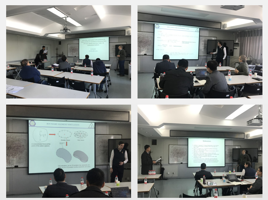 为进一步活跃校园学术氛围,加强中白教师之间的学术交流,2018年11月6日上午,我院邀请来自白俄罗斯国立大学两位力学方向的学者为相关师生进行学术讲座。VOLKOV VASILY教授和MARMYSH DENIS副教授分别以“Spectral methods for numerical simulation of counter propagating optical waves interaction in nonlinear media”和“Boundary element method for distributed load and its applications”为题,为大家带来了一场精彩的学术讲座。